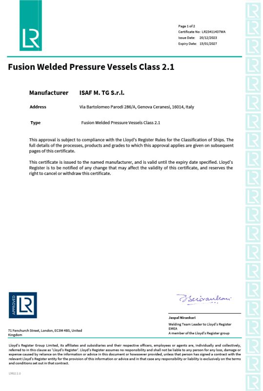 Весь производственный цикл, ориентированный на абсолютную гарантию качества, сертифицирован по стандартам ISO 9001: 2015. Уровень качества и накопленный опыт позволили компании получить признание RINA, как производителя с фидуциарной проверкой (контролем доверия).